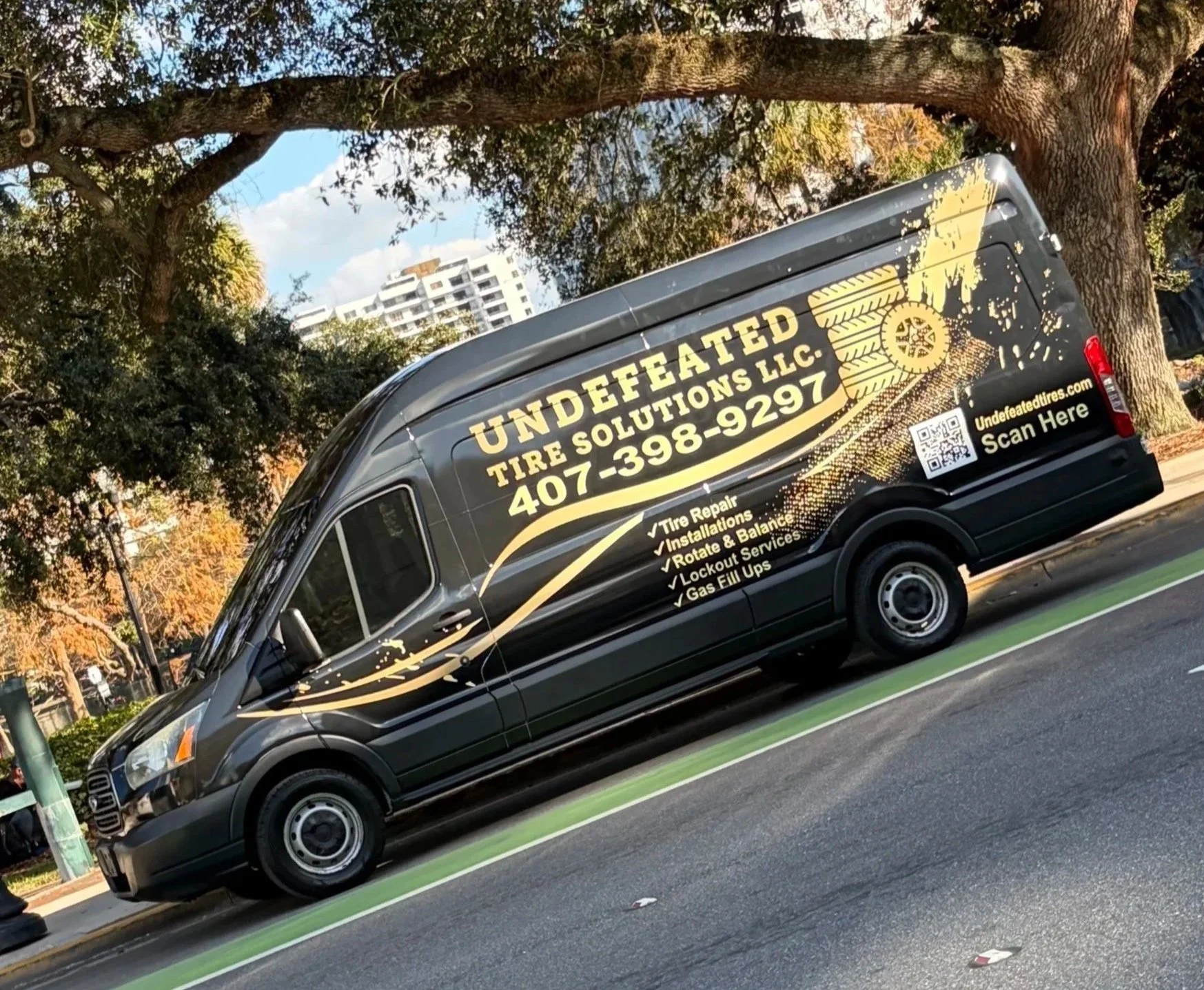 24/7 mobile tire shop offering replacement with on-site tire inventory, plus roadside assistance for personal and commercial vehicles across Central Florida.